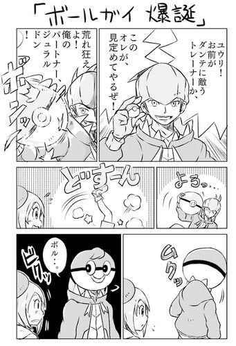 今日は漫画描きました ポケモン剣盾のボールガイです ポケモン剣盾の新キャラ、キバナを描いてみたくて、キバナを描くための思いつきの 落書き漫画です ボールガイってなんなんでしょうね 非公認の怪しいコスプレらしいですが