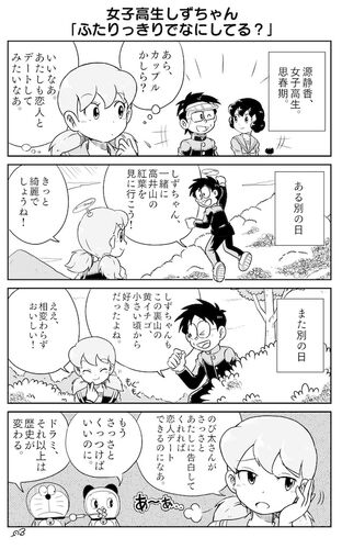 今日は漫画描きました 新年一発目の漫画は、 女子高生しずちゃんで 「ふたりっきりでなにしてる?」 個人的にこの漫画の見どころは、 のび太のデートコースと、まあまあ棒です デートコースは元ネタが空でわかる方と握手したい! そもそものび太としずちゃん…