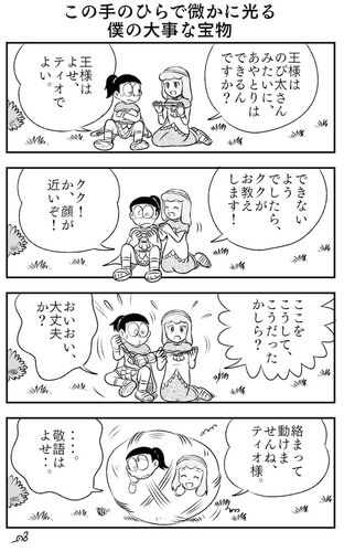 今日は漫画描きました 太陽王伝説の妄想エピローグです 令和のこの時代にティオとククのラブコメ描く人物なんて、僕くらいなもんですよ!(たぶん) いろいろ小ネタ詰め込みました 基本的にドラえもん好きな中でも、 僕は原作至上主義なところがあるんですが…