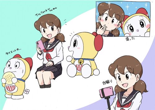 今日の落書きです Twitterでよくある、わちゃわちゃっと可愛い感じのシーンを色々書き込んだ落書きを描いてみたくて、高校生になったしずちゃんとドラミちゃんの日常を妄想してわちゃわちゃかいてみました。 あんまりわちゃわちゃせずスペース駄々余りですね…